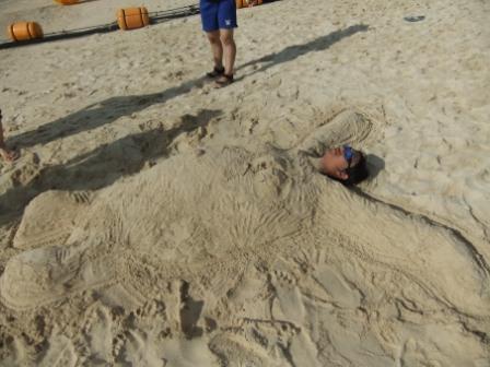 やはり沖縄といったら海!海といったら泳ぐしかないだろ(笑)競争したり水かけたり、砂人間(亀?)をつくったりと大はしゃぎでした!